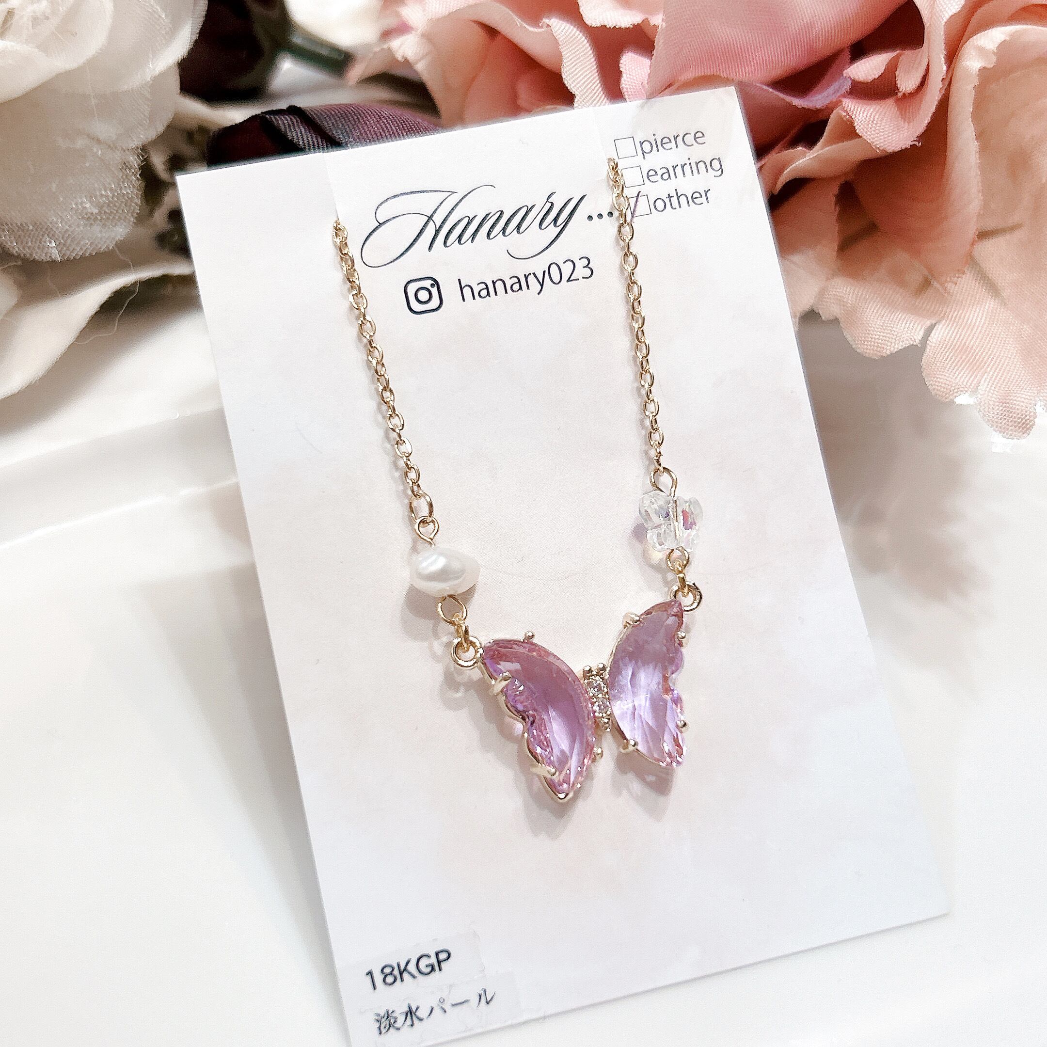 こちらは淡水パールとガラスバタフライの